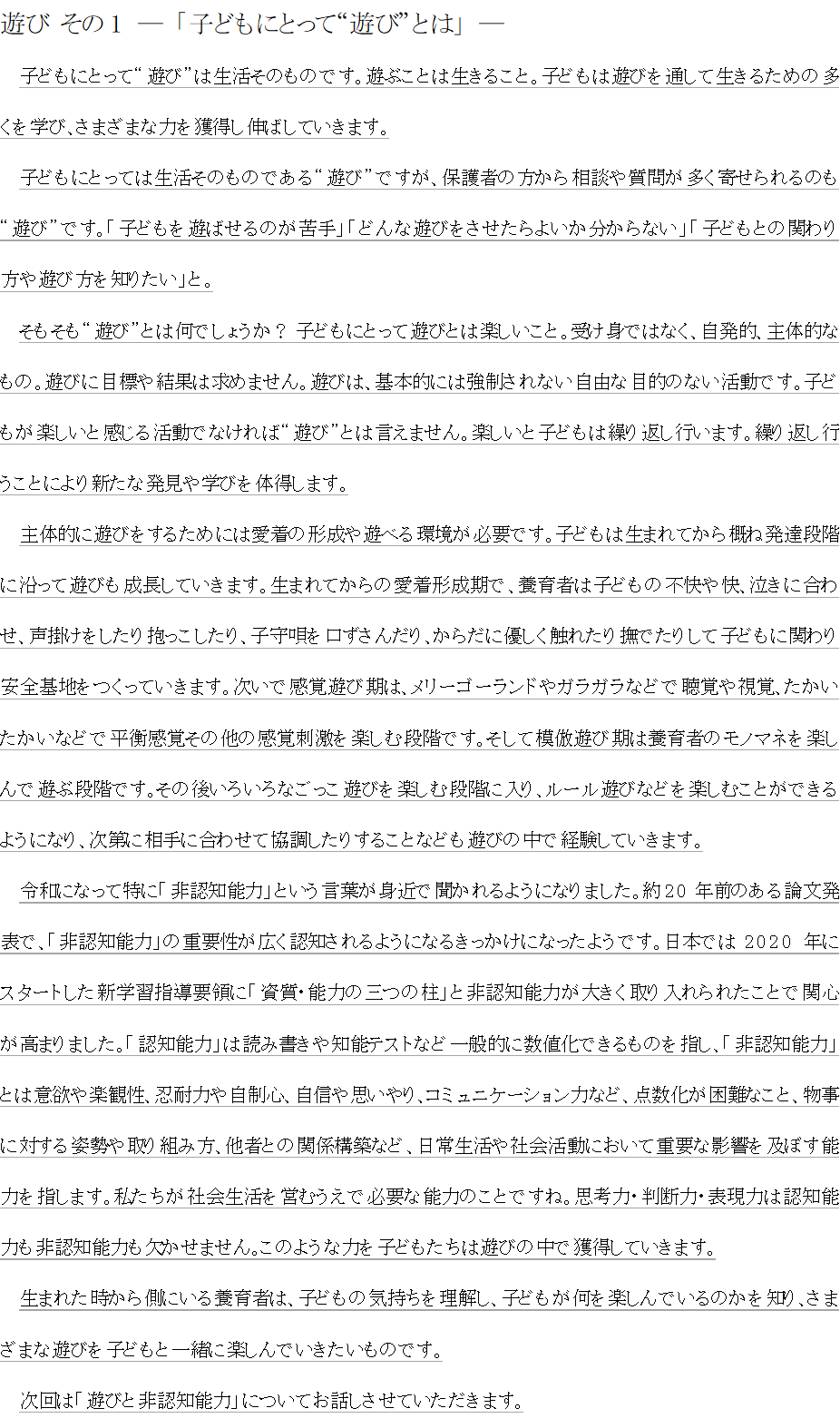 語る 遊び その1 ― 「子どもにとって“遊び”とは」 ―