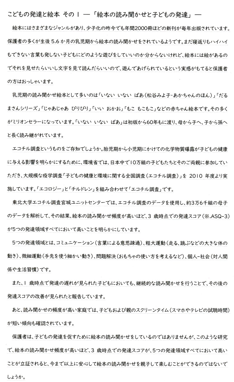 語る こどもの発達と絵本 その1ー「絵本の読み聞かせと子どもの発達」ー